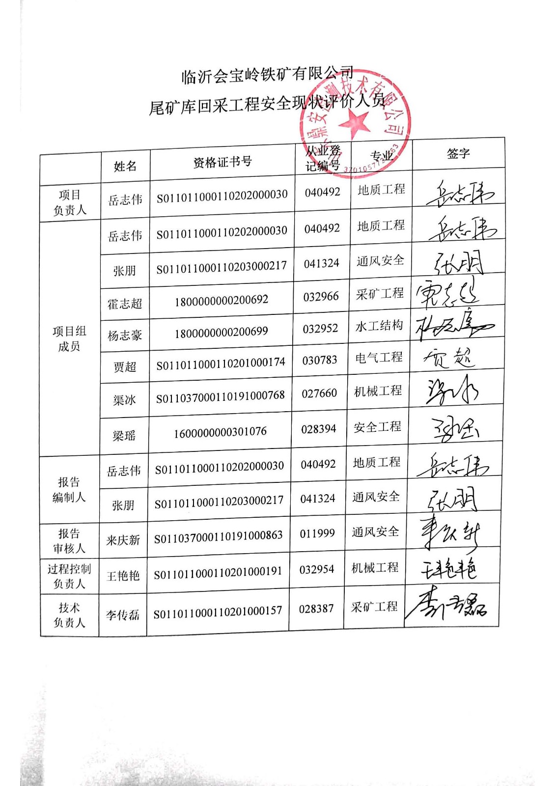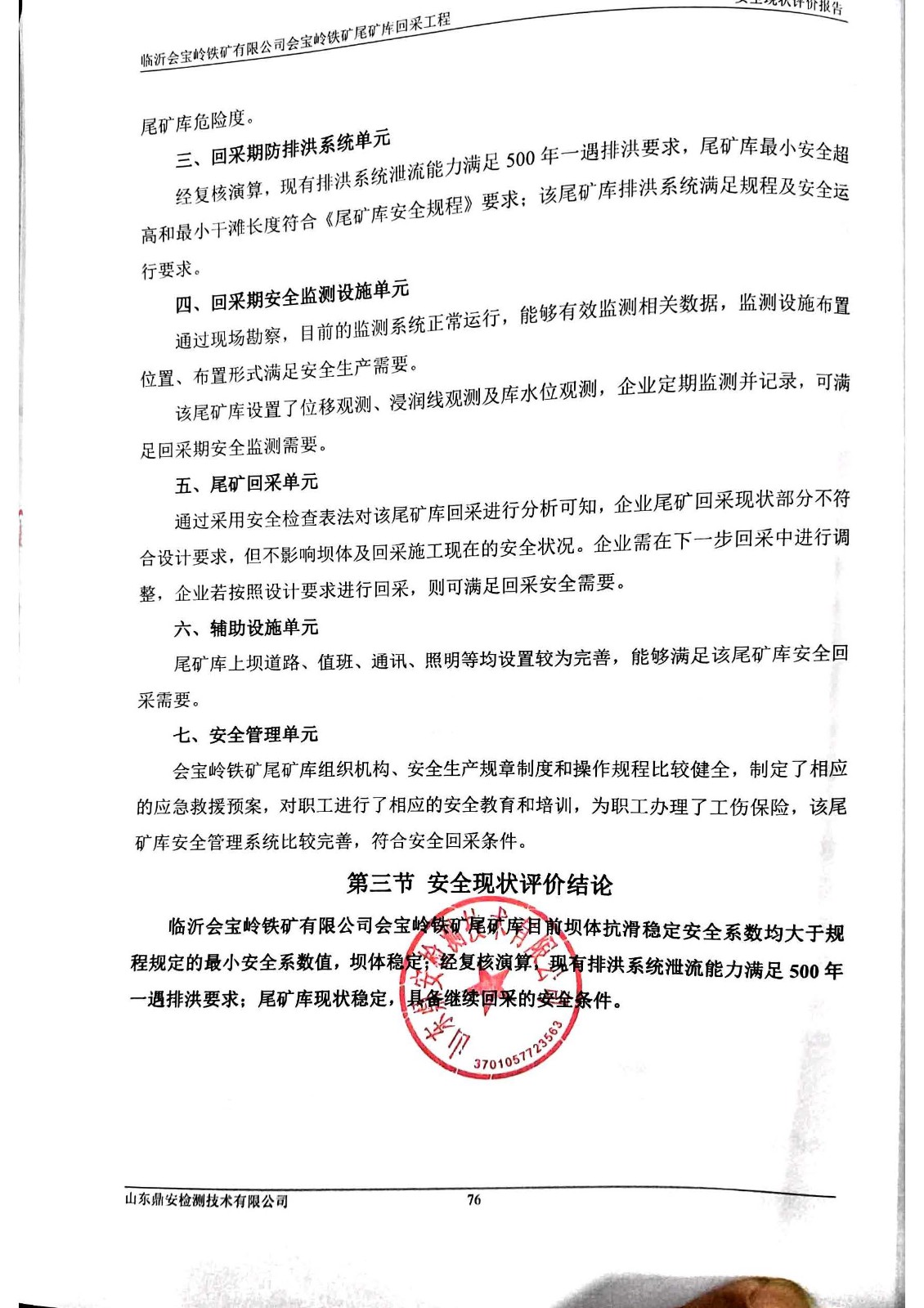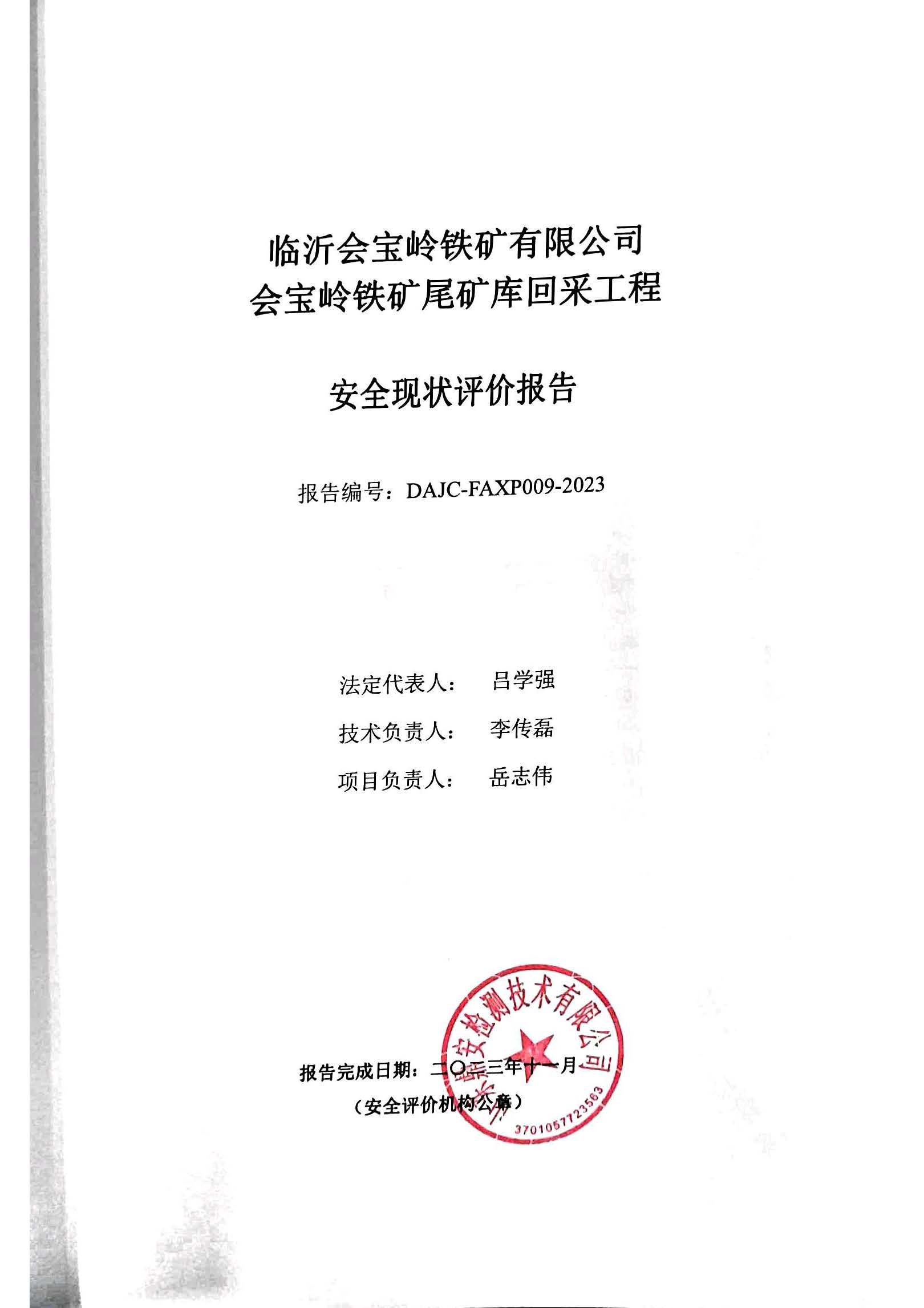 評價項目名稱 | 臨沂會寶嶺鐵礦有限公司 會寶嶺鐵礦尾礦庫回采工程安全現(xiàn)狀評價報告 | |||||||