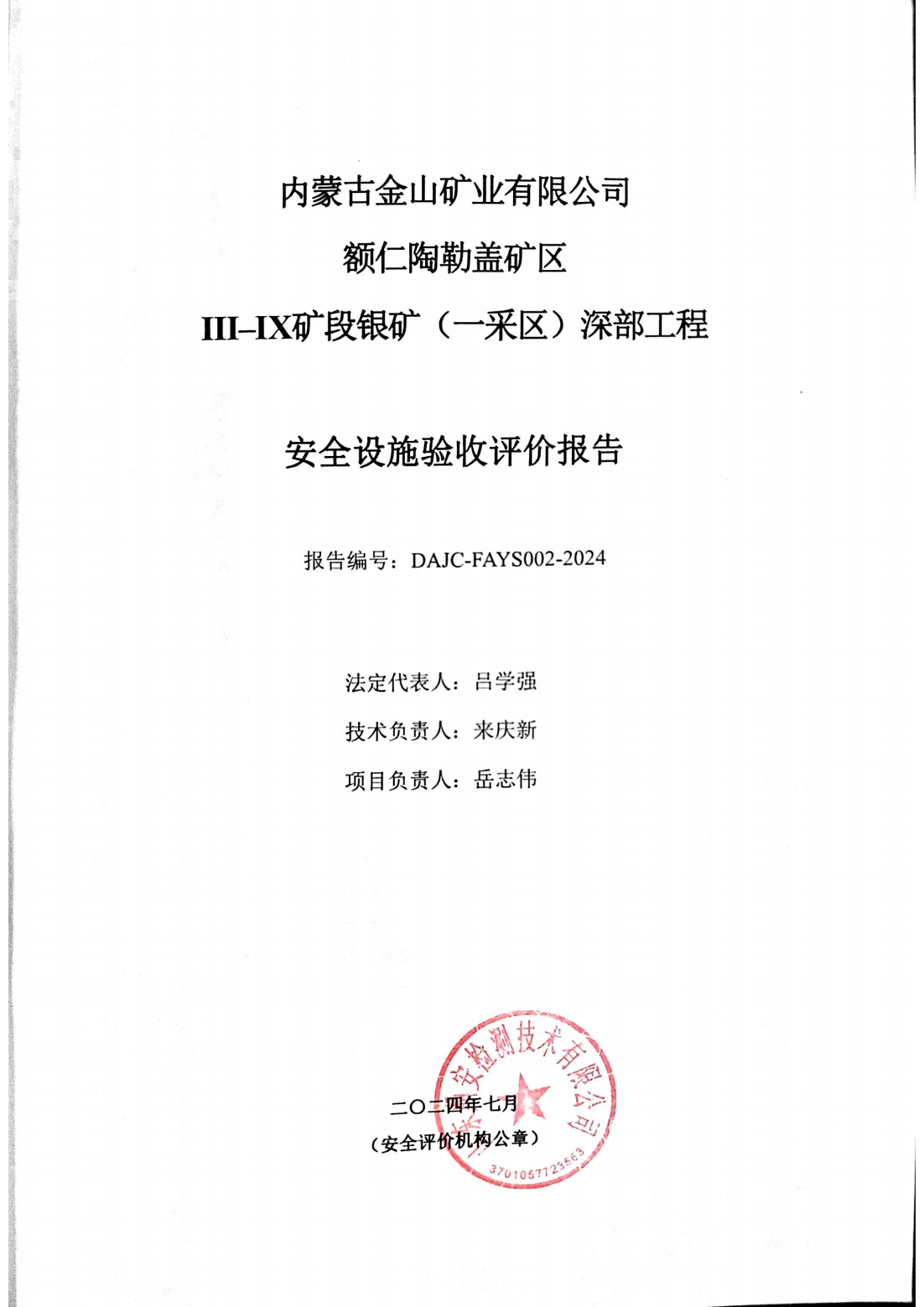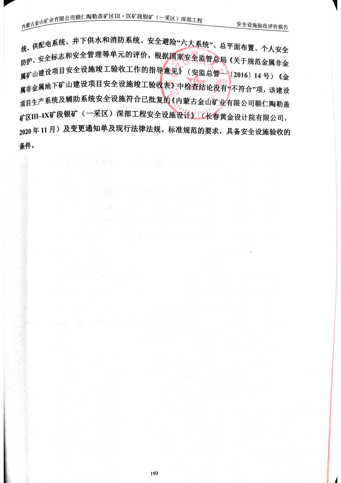 內(nèi)蒙古金山礦業(yè)有限公司 額仁陶勒蓋礦區(qū)Ⅲ–Ⅸ礦段銀礦(一采區(qū))深部工程 安全設(shè)施驗(yàn)收評(píng)價(jià)-網(wǎng)上公開信息
