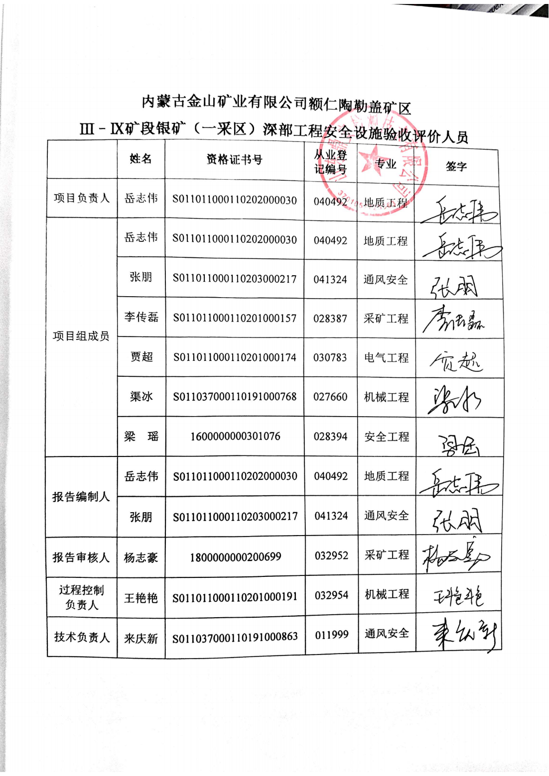 參與安全評(píng)價(jià)工作的注冊(cè)安全工程師:岳志偉、張朋、李傳磊、賈超、渠冰、梁瑤