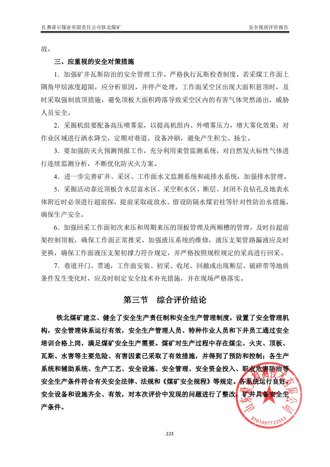 評(píng)價(jià)項(xiàng)目簡(jiǎn)介: 扎賚諾爾煤業(yè)有限責(zé)任公司鐵北煤礦(以下或簡(jiǎn)稱(chēng)“鐵北煤礦”)位于內(nèi)蒙古自治區(qū)呼倫貝爾市西部,行政區(qū)劃屬滿(mǎn)洲里市管轄。礦井設(shè)計(jì)生產(chǎn)能力為150萬(wàn)t/a,根據(jù)國(guó)家煤礦安全監(jiān)察局批復(fù)的《國(guó)家煤礦安全監(jiān)察局辦公室關(guān)于核定扎煤公司靈東等3處煤礦生產(chǎn)能力的復(fù)函》(煤安監(jiān)司函辦〔2017〕55號(hào)),礦井核定生產(chǎn)能力為360萬(wàn)t/a。 礦井現(xiàn)采用斜-立井開(kāi)拓方式,布置有主斜井、一號(hào)副斜井、二號(hào)進(jìn)風(fēng)立井、三號(hào)回風(fēng)立井四條井筒。礦井一水平沿Ⅱ2a煤層布置二采運(yùn)輸上山、二采軌道上山與二采二段運(yùn)輸下山、二采二段軌道下山、330石門(mén)相連,布置+330m水平軌道大巷、+330m水平皮帶大巷(已密閉)和+330m水平回風(fēng)大巷三條水平大巷,采用上、下山開(kāi)拓方式,雙翼開(kāi)采Ⅱ2a煤層,目前該煤層已回采結(jié)束;沿井田中部布置Ⅱ3回風(fēng)下山、Ⅱ3軌道下山和Ⅱ3皮帶下山三條大巷,采用下山開(kāi)拓方式,目前采用雙翼開(kāi)采Ⅱ3煤層。采煤工作面采用走向長(zhǎng)壁式采煤法,綜合機(jī)械化放頂煤采煤工藝,全部垮落法管理頂板;掘進(jìn)工作面均采用綜掘工藝。 為貫徹《中華人民共和國(guó)安全生產(chǎn)法》《安全生產(chǎn)許可證條例》《煤礦企業(yè)安全生產(chǎn)許可證實(shí)施辦法》以及其他相關(guān)法律法規(guī)的規(guī)定,扎賚諾爾煤業(yè)有限責(zé)任公司鐵北煤礦于2024年3月委托山東鼎安檢測(cè)技術(shù)有限公司對(duì)礦井進(jìn)行安全現(xiàn)狀評(píng)價(jià)工作,為其辦理《安全生產(chǎn)許可證》的延續(xù)提供技術(shù)支持。 | ||||||||