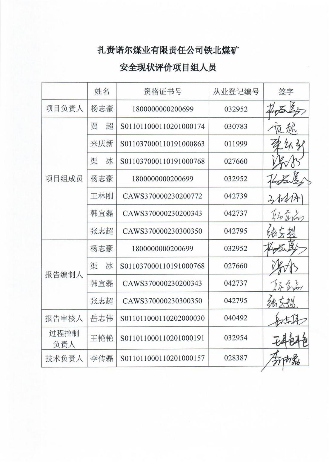 評(píng)價(jià)項(xiàng)目名稱(chēng) | 扎賚諾爾煤業(yè)有限責(zé)任公司鐵北煤礦安全現(xiàn)狀評(píng)價(jià) | |||||||