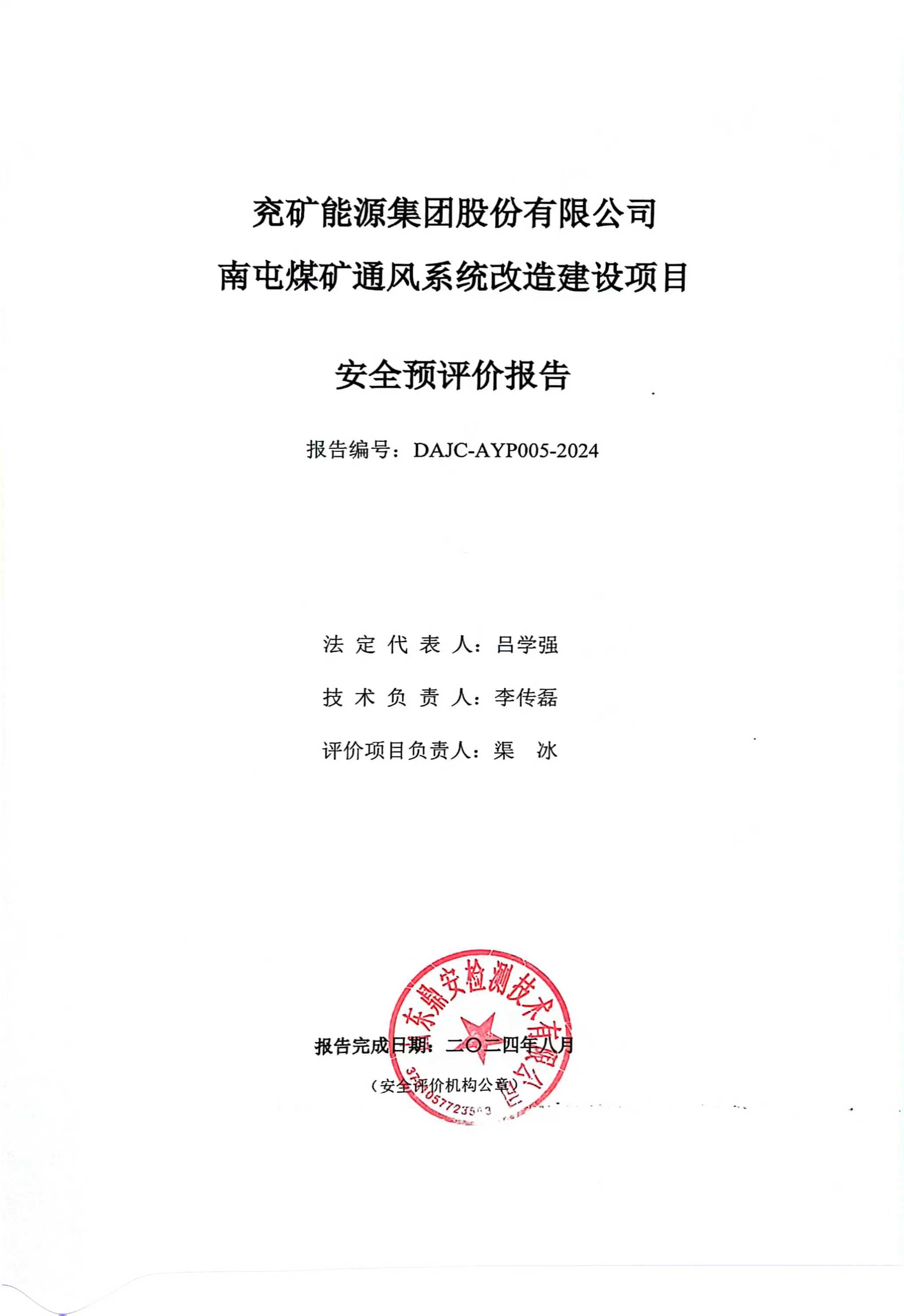 評價報告提交時間 | 2024.8 | 法定代表人 | 呂學(xué)強(qiáng) | |||||