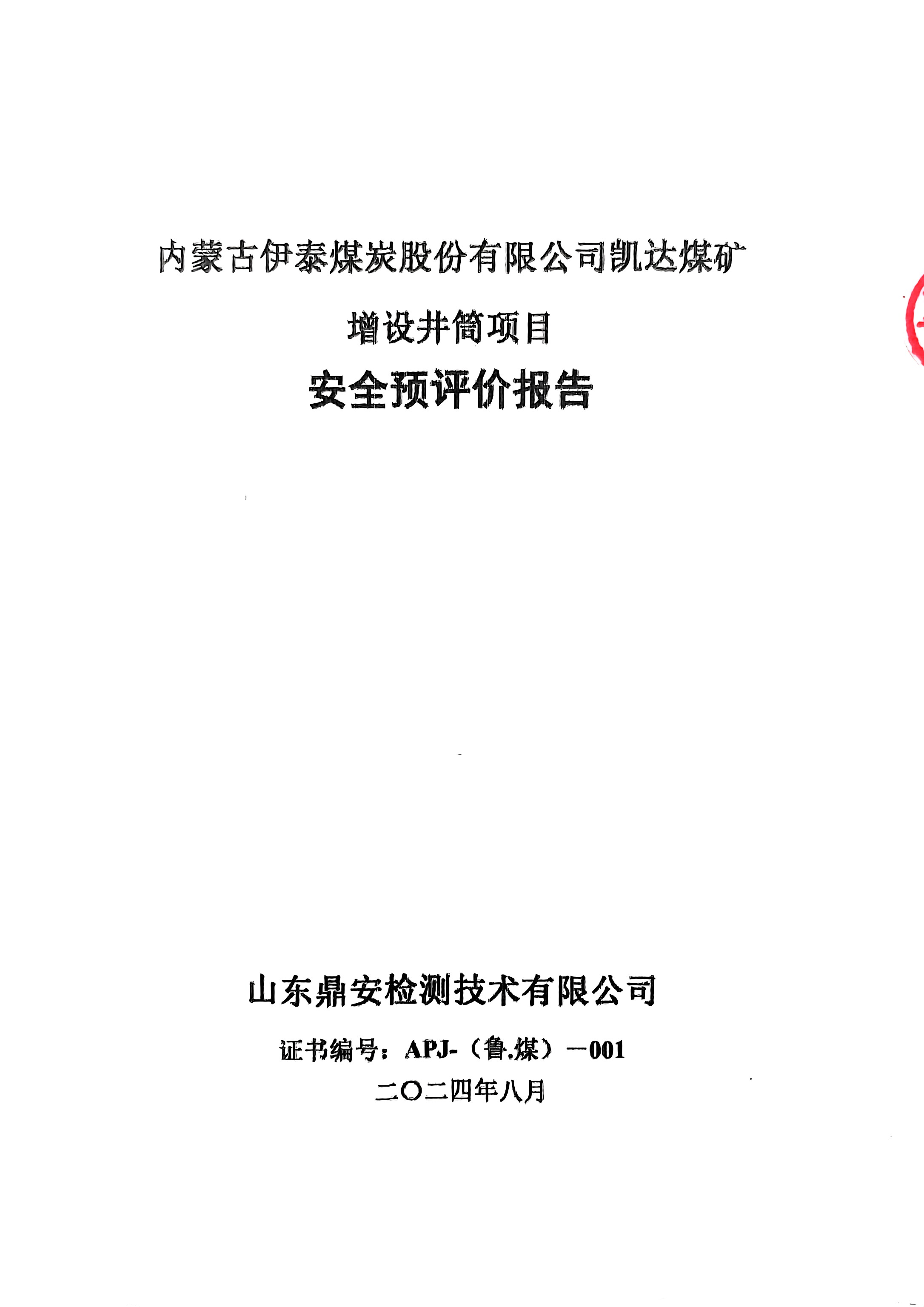 評(píng)價(jià)項(xiàng)目名稱 | 內(nèi)蒙古伊泰煤炭股份有限公司凱達(dá)煤礦增設(shè)井筒項(xiàng)目安全預(yù)評(píng)價(jià) | ||||||