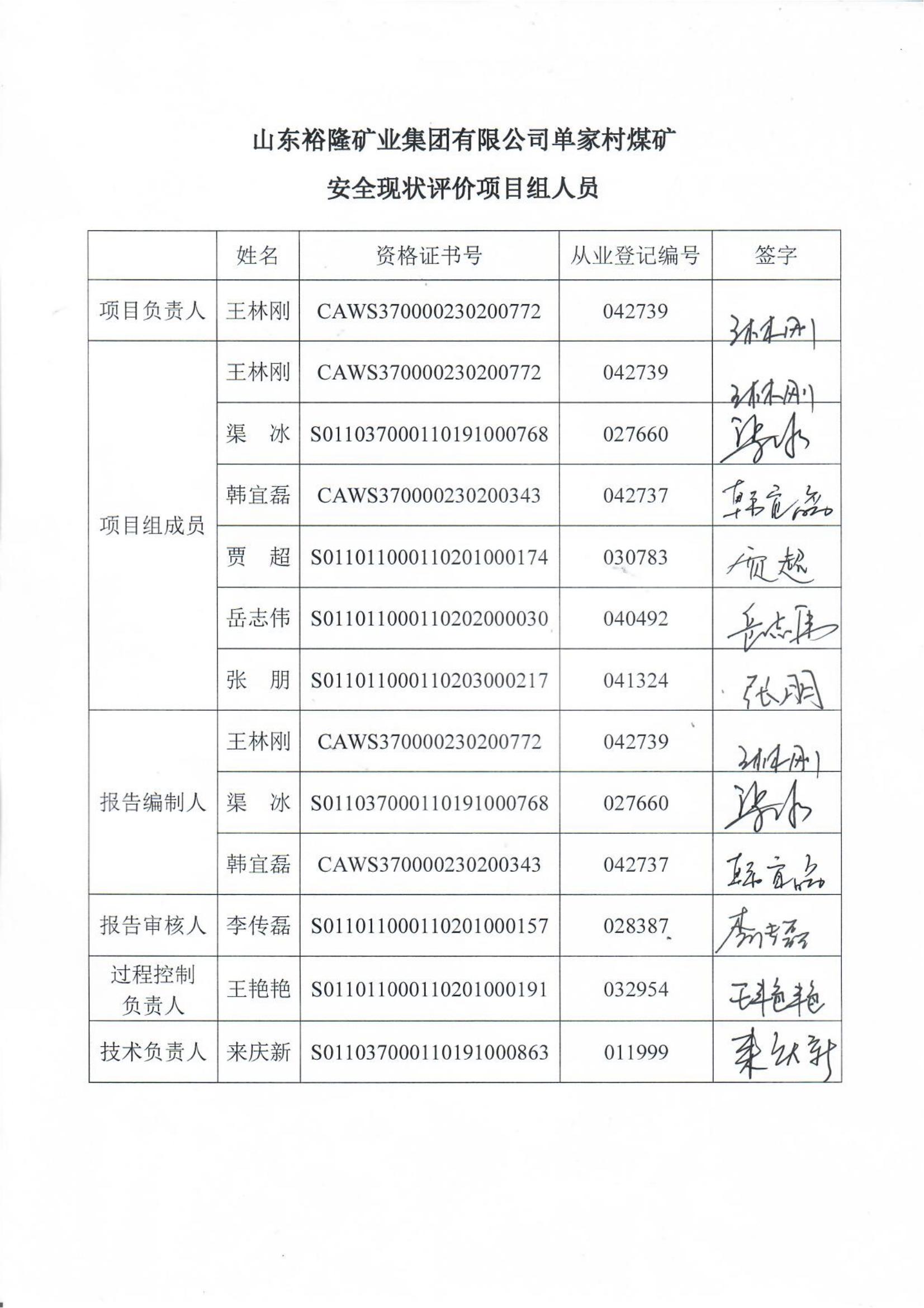 參與安全評(píng)價(jià)工作的注冊(cè)安全工程師:王林剛、渠冰、賈超、岳志偉、張朋 | ||||||||