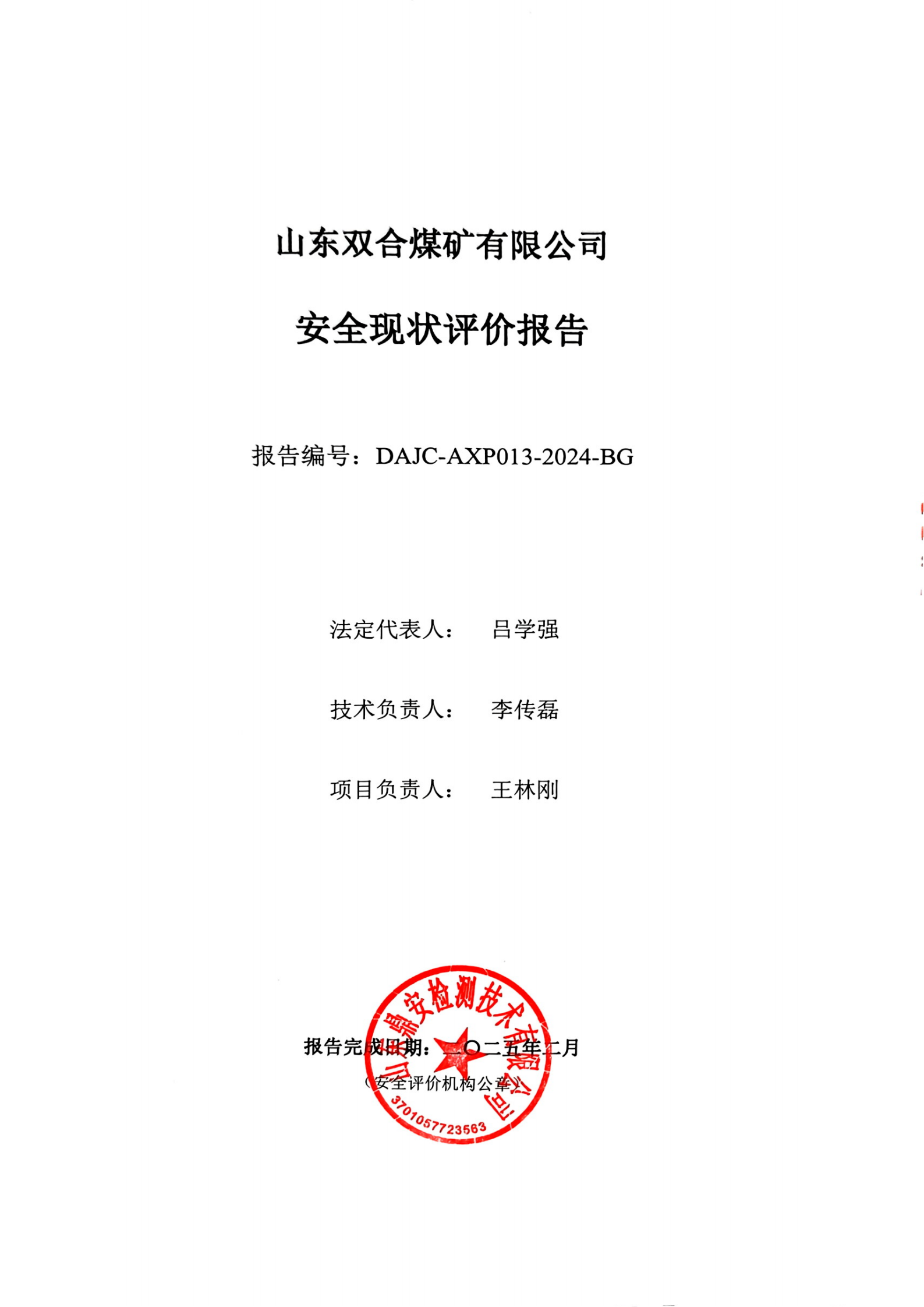 山東雙合煤礦有限公司安全現(xiàn)狀評價-網上公開信息