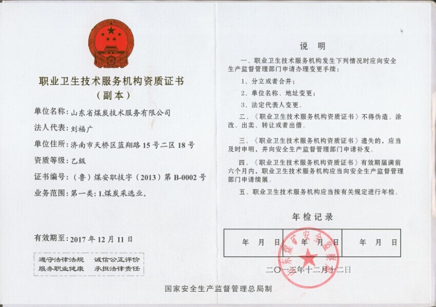 關(guān)于我公司職業(yè)衛(wèi)生資質(zhì)證書變更公告